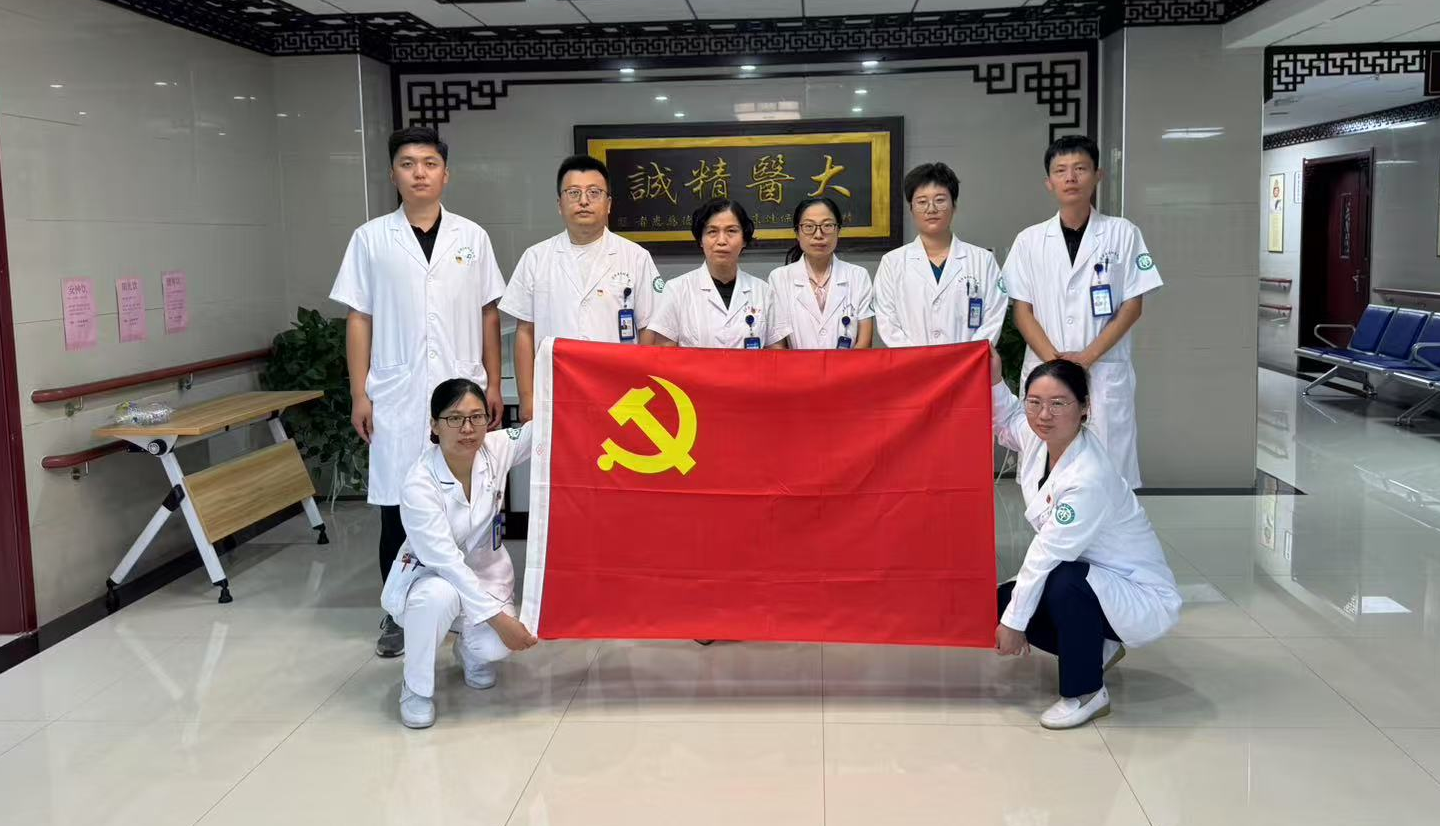 銀針映初心,黨旗照征程。手持傳承千年的針灸器具,與鮮紅黨旗并肩而立。每一根銀針都是守護健康的使命,每一次行針都是踐行醫(yī)者仁心的承諾。中醫(yī)針灸黨支部全體黨員將以黨旗為引,把傳統(tǒng)醫(yī)學智慧融入新時代健康事業(yè),用精湛醫(yī)術(shù)傳遞溫暖,以赤誠之心守護生命,讓針灸銀針閃耀信仰光芒,讓中醫(yī)瑰寶在黨徽下綻放新彩!