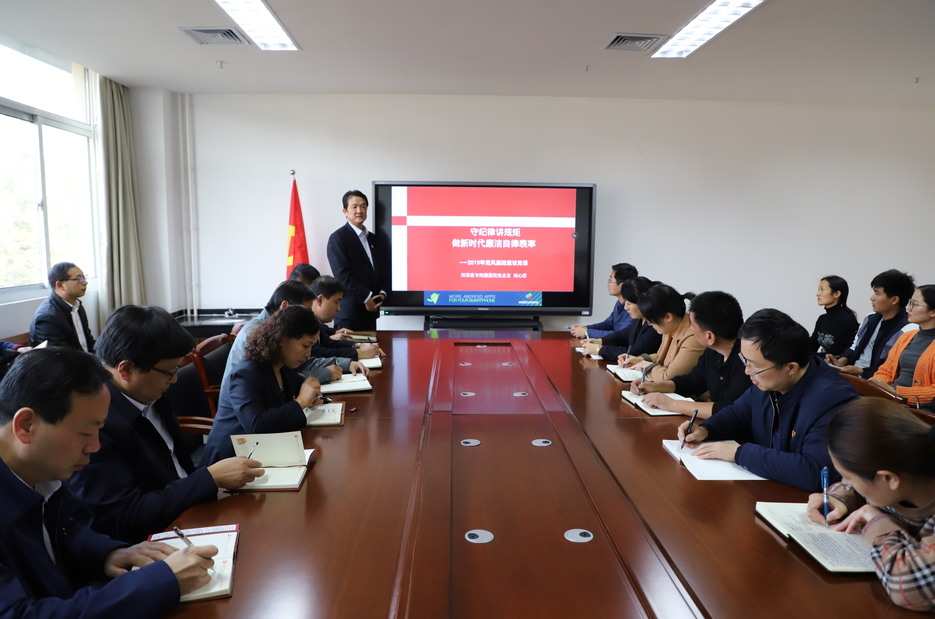 按照省衛(wèi)生健康委部署要求和學校主題教育工作安排,10月31日下午,黨總支書記劉心臣以《守紀律講規(guī)矩 做新時代廉潔自律表率》為題,為全體黨員講授了主題教育專題黨課。