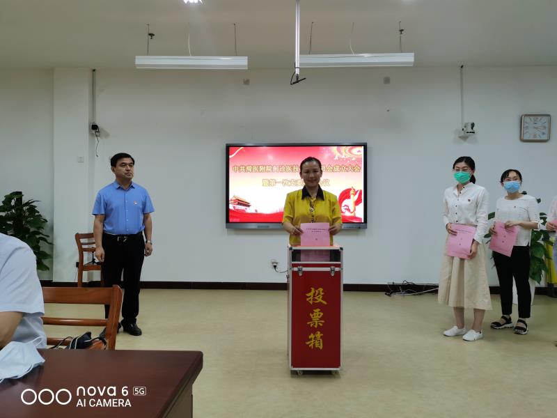王煒振同志代表醫(yī)院黨委對門診醫(yī)技黨支部委員會的成立表示祝賀!對新一屆支部委員提出了殷切的希望,并就進(jìn)一步加強(qiáng)和改進(jìn)支部黨建工作提出了具體要求,要求新當(dāng)選的支部委員牢記使命,扛起新時代附院黨建的建設(shè)責(zé)任;認(rèn)真履職,開啟附院黨建的新征程;堅持不懈抓基層,打基礎(chǔ),建立健全黨支部的組織機(jī)構(gòu)、工作職責(zé);弘揚(yáng)優(yōu)良作風(fēng),密切聯(lián)系群眾。要在上級黨委和醫(yī)院黨委的正確領(lǐng)導(dǎo)下,不忘初心、牢記使命,帶好隊伍,當(dāng)好表率,扛起新時代的黨建責(zé)任,為附院發(fā)展出力獻(xiàn)策。