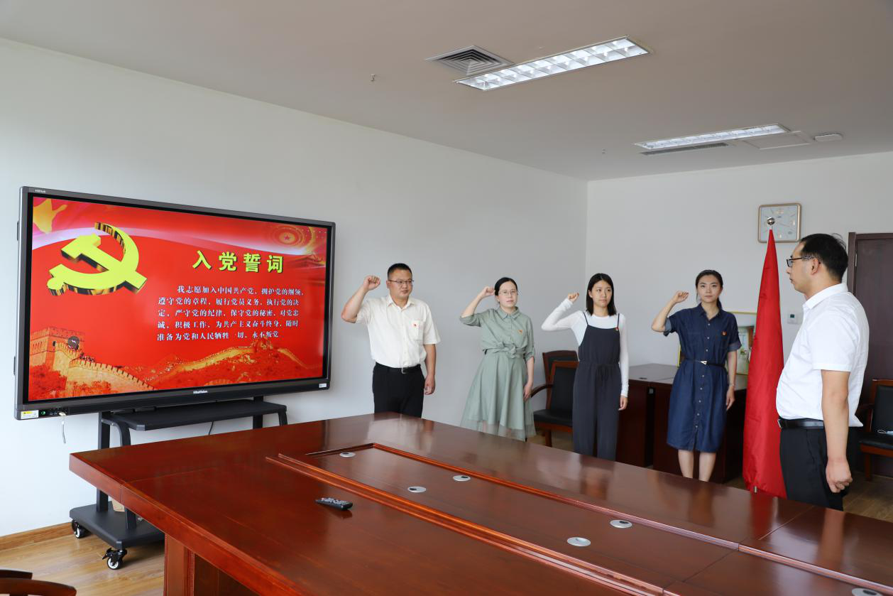 “我志愿加入中國(guó)共產(chǎn)黨,擁護(hù)黨的綱領(lǐng),遵守黨的章程……”鏗鏘誓言,莊嚴(yán)神圣,4名新黨員面向黨旗,進(jìn)行了鄭重宣誓!
