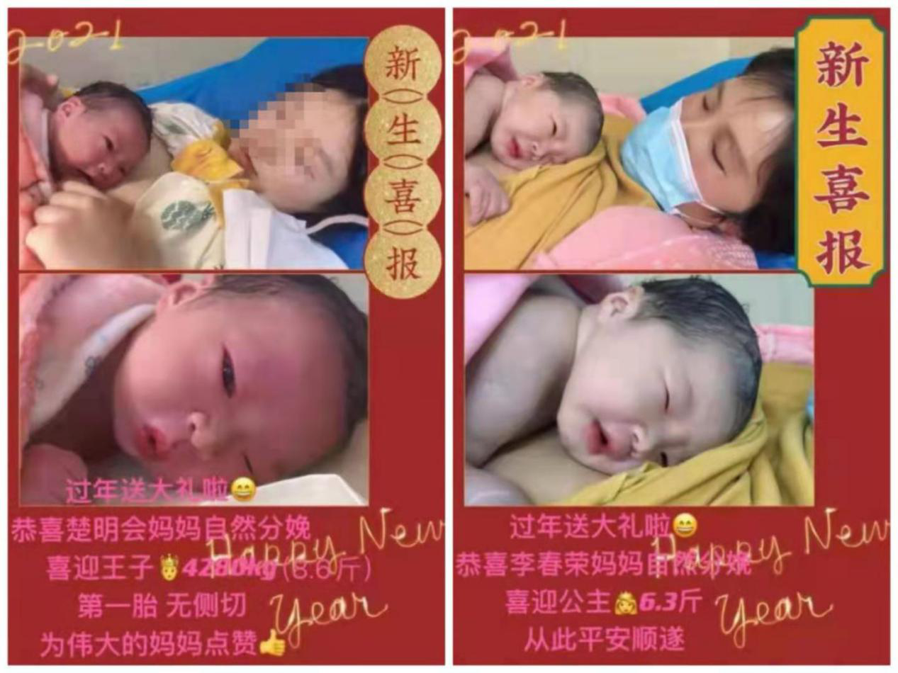 病房內溫赟、閆森有條不紊地為母嬰測量生命體征、進行治療和護理工作;產(chǎn)房護士長張俊紅、護士李雪燕在為新生兒沐浴、為產(chǎn)婦胎心監(jiān)測,不厭其煩地指導產(chǎn)婦用力;張紅燕、王言言為病人辦理入院、出院、書寫病歷、查房、處理醫(yī)囑。在孕媽媽的勇敢堅持下,醫(yī)護助的共同努力下,喜訊傳來,除夕這一天,迎來了兩位牛寶寶,可謂“雙喜臨門”。