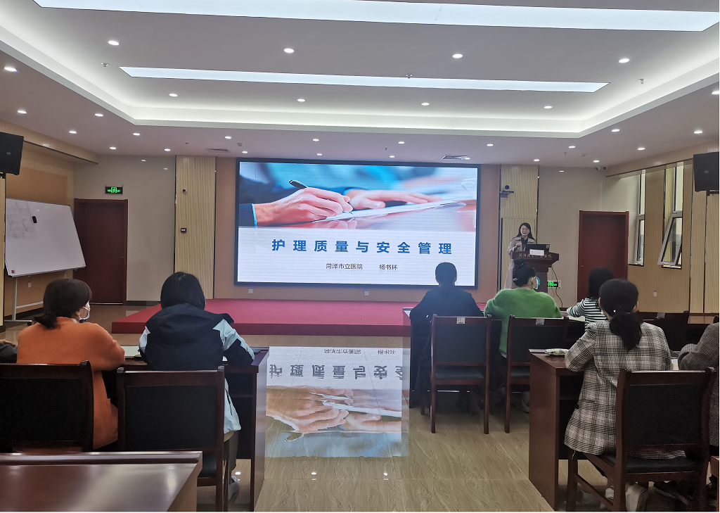 楊書環(huán)通過實際案列,講解了在護理管理中著名的馬蹄釘效應、墨菲效應、奶酪原理后,拉開了本次授課的序幕,即護理質量與安全管理。重點內容為護理質量概述、護理質量管理標準、護理質量監(jiān)測指標、護理不良事件管理等。楊主任講課內容豐富、課程設計思路清晰、內容充實貼合實際,可操作性強,給護士長帶來了一場視聽盛宴。