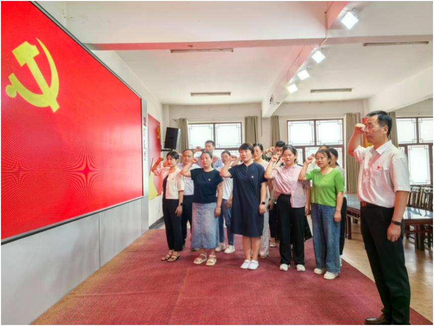 在楊湖公益大講堂,全體黨員面向黨旗重溫入黨誓詞,進(jìn)行莊嚴(yán)宣誓,重憶入黨初心,表達(dá)對黨的無限忠誠和為黨的事業(yè)奮斗終身的堅定決心。