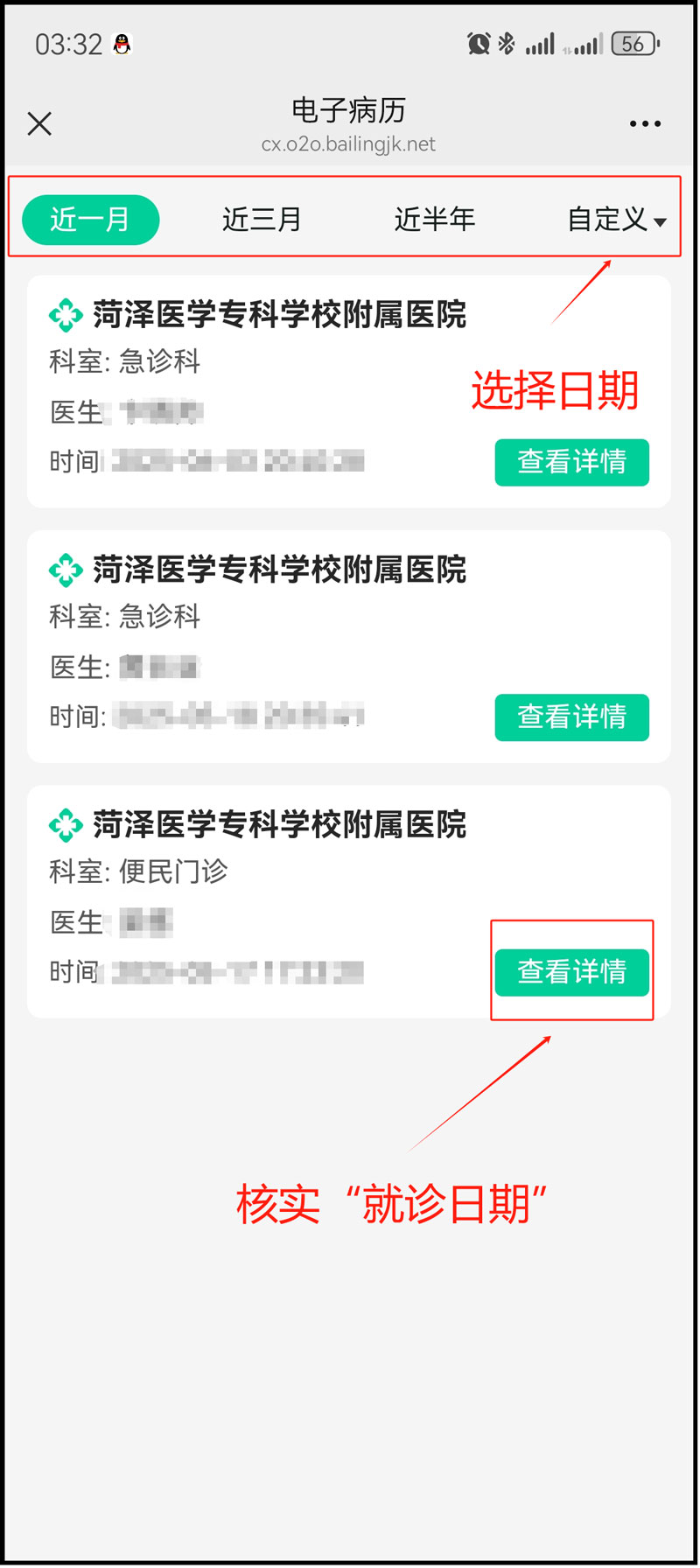⑤選擇“就診日期”,核實后點擊“查看詳情”
