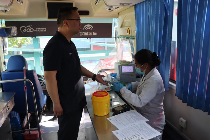 清晨,菏澤市中心血站的采血車駛入醫(yī)院門診樓前,早已等候在此的獻血者們有序排隊。在志愿者引導下,參與者依次完成信息登記、血壓檢測、血液初篩等流程。獻血隊伍中既有連續(xù)多年參與獻血的“老面孔”,也有初次嘗試的年輕醫(yī)護;既有剛下夜班的護士,也有利用工作間隙趕來的醫(yī)生。一袋袋溫熱的血液匯聚成守護生命的紅色力量,活動現(xiàn)場愛心涌動。