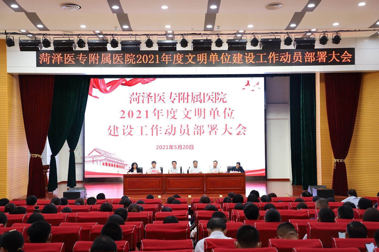 醫(yī)院黨委委員、副院長苑玉萍同志宣讀了《菏澤醫(yī)學專科學校附屬醫(yī)院加強2021年文明單位建設實施方案》,苗祥玉院長做了動員講話。
