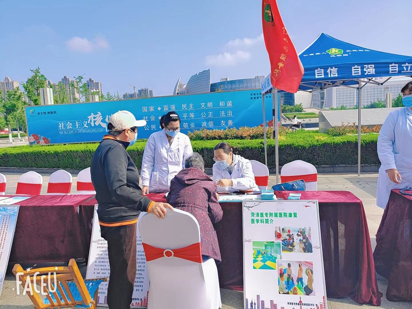 活動(dòng)現(xiàn)場(chǎng),菏澤醫(yī)專附屬醫(yī)院康復(fù)醫(yī)學(xué)科的醫(yī)務(wù)人員為群眾介紹康復(fù)醫(yī)學(xué)專業(yè)知識(shí),科室可提供的康復(fù)服務(wù)項(xiàng)目等。為前來(lái)咨詢的老人測(cè)量血壓和健康知識(shí)宣教,并給出合理可行的疾病預(yù)防和康復(fù)干預(yù)方案。