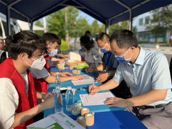 在充分做好各項準備工作的前提下,8月5日上午,菏澤醫(yī)專附屬醫(yī)院如期開展無償獻血活動。盡管天氣炎熱,但絲毫沒有阻擋全院干部職工、實習學生們奉獻愛心的熱情。