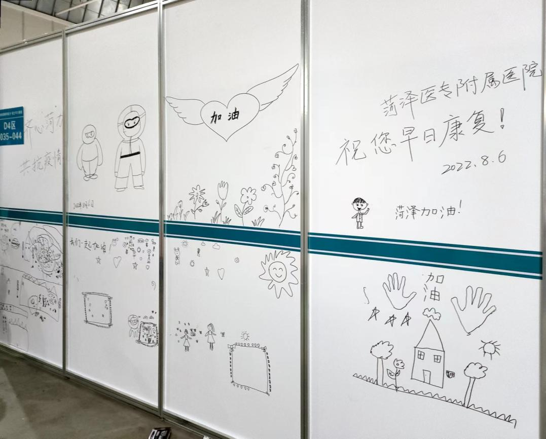 通過一個(gè)個(gè)“靈魂畫手”的深情涂鴉,大家駐足觀看,整個(gè)艙內(nèi)充滿了溫情和生機(jī),增強(qiáng)了大家早日康復(fù)的信心。