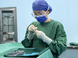 “全副武裝”的手術(shù)室護士嚴(yán)陣以待。比賽開始,大家全神貫注,全力以赴,一針一線在手中穿梭,看似是一個簡單的穿針動作,但要做到在短時間內(nèi)將針孔大小的絲線穿入,并做到回線長短適中,沒有扎實的基本功和沉穩(wěn)的心態(tài)是難以完成的。經(jīng)過激烈的角逐和比拼,最終結(jié)果為,第一名:程爽;第二名:趙丹丹;第三名:李然。穿針引線時手法穩(wěn),穿針準(zhǔn),引線快,實至名歸。