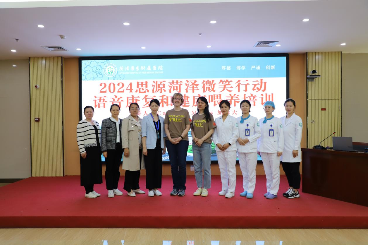 為提升醫(yī)務(wù)人員語(yǔ)音康復(fù)技能,更好地治療術(shù)后唇腭裂患者的語(yǔ)音障礙,5月8日下午,菏澤醫(yī)專附屬醫(yī)院邀請(qǐng)加拿大語(yǔ)音師為口腔、兒科、護(hù)理部、健康管理中心等有關(guān)科室工作人員及各病區(qū)護(hù)士長(zhǎng)進(jìn)行語(yǔ)音康復(fù)和健康喂養(yǎng)培訓(xùn),有效提高了醫(yī)務(wù)人員的語(yǔ)音康復(fù)技能,為唇腭裂患者術(shù)后語(yǔ)音訓(xùn)練、語(yǔ)音康復(fù)治療提供了保障。