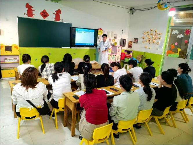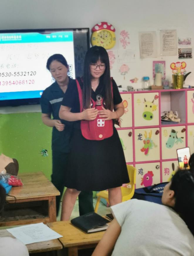 為增強(qiáng)教師的安全意識,增長教師的急救知識,使教師能在幼兒園突發(fā)事件中運用一些單易行的急救知識去進(jìn)行急救,降低對幼兒的傷害程度,8月21日傍晚菏澤醫(yī)專附屬醫(yī)院急診科主任杜修生、副護(hù)士長劉霄婷受邀來到青苗幼兒園,利用休息時間為30余名幼兒教師及后勤人員進(jìn)行了為期2小時的急救知識及技能普及培訓(xùn)。