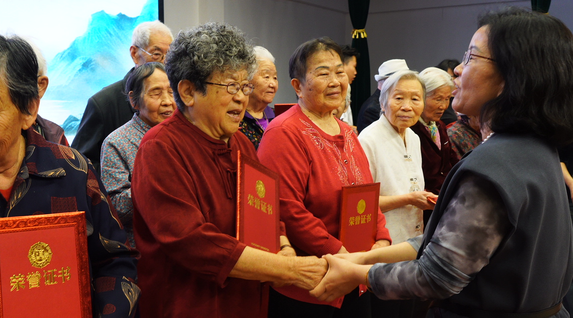菏澤醫(yī)專附屬醫(yī)院副院長苑斌帶來戲曲為長輩們送上真摯的祝福并分發(fā)了重陽節(jié)禮物。文藝匯演結(jié)束后,老年醫(yī)學(xué)科劉美華主任和菏澤醫(yī)專附屬醫(yī)院部分科室護士長為參與演出的長輩們頒發(fā)榮譽證書。