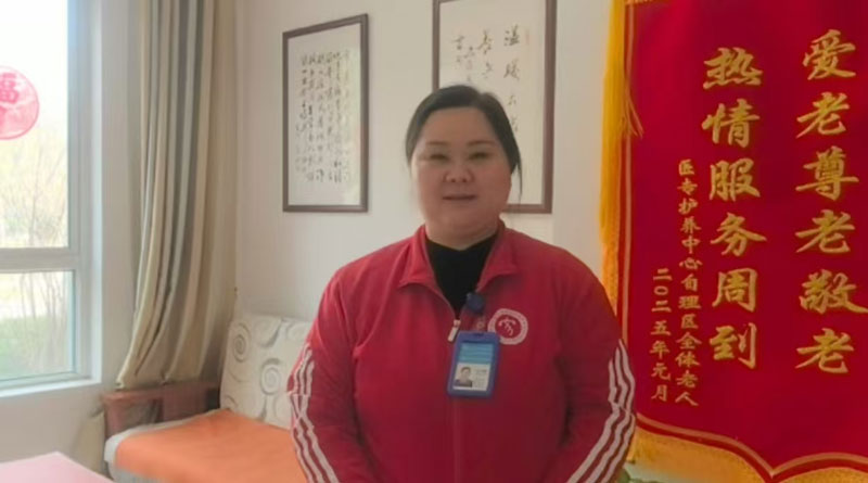 “我和老伴年紀大了,行動不便,但護理團隊的姑娘小伙們從來沒有嫌棄過我們。年紀大了行動不便,有一次老伴在沒有和任何人說的情況下自己出門遛彎,也沒帶手機,我就和值班護理員說了,馬承榮(小馬)特別著急滿院子找他,急得滿頭大汗,看得我心里也是暖融融的,最后找到老伴,他說坐在3c樓曬太陽睡著了,小馬這才放心地去做別的工作?!?/span>