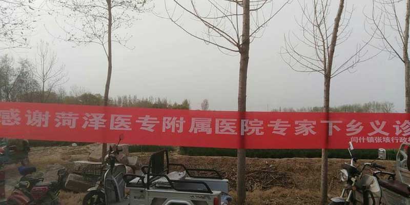 在鄉(xiāng)親們歡慶的秧歌隊和鑼鼓聲中,很快一個條幅進入眼簾!當(dāng)?shù)卮逦癁闅g迎附院義診隊伍,制作了一條歡迎條幅!瞬間感動裝滿了胸膛,鄉(xiāng)親們,一種特殊的感動情愫悠然而生,第一次這種特殊的感覺。