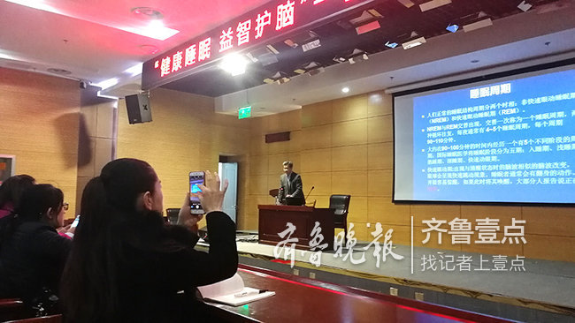 首先,張教授通過(guò)大數(shù)據(jù)資料介紹了目前大多數(shù)人的睡眠狀況。接著用實(shí)例分析了長(zhǎng)期睡眠不足的各類危害,其中,他重點(diǎn)講述了兒童睡眠障礙的各類危害,并就如何幫助孩子提高睡眠質(zhì)量,作了詳細(xì)的介紹。此外,他還對(duì)失眠、打呼嚕和午休作了精彩的講解。他建議,午睡前不吃油膩的食物,不吃太飽;不宜午餐后立即躺下午睡;午休時(shí)間控制在十五到三十分鐘之間。