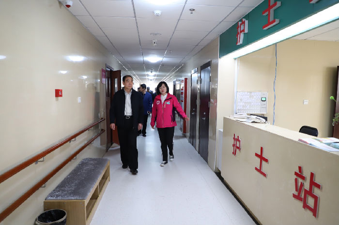 領(lǐng)導(dǎo)一行首先來到我院新門診、醫(yī)技、病房樓大廳、放射科、ICU、內(nèi)科病房等進行了視察,隨后參觀了我院護養(yǎng)中心,詳細(xì)了解了半自理區(qū)、完全不能自理區(qū)、自理區(qū)和娛樂活動區(qū), 副院長張衛(wèi)華分別進行了詳細(xì)介紹,最后來到自理區(qū)樣板間參觀,工作人員進行了詳細(xì)介紹。