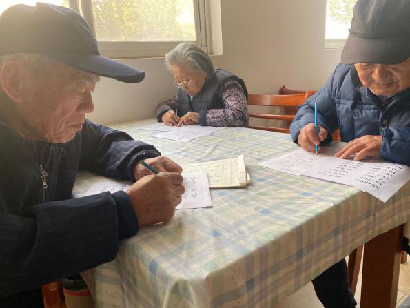 圖 介助區(qū)的長(zhǎng)輩們?cè)谧鏊銛?shù)和成語(yǔ)填詞訓(xùn)練
