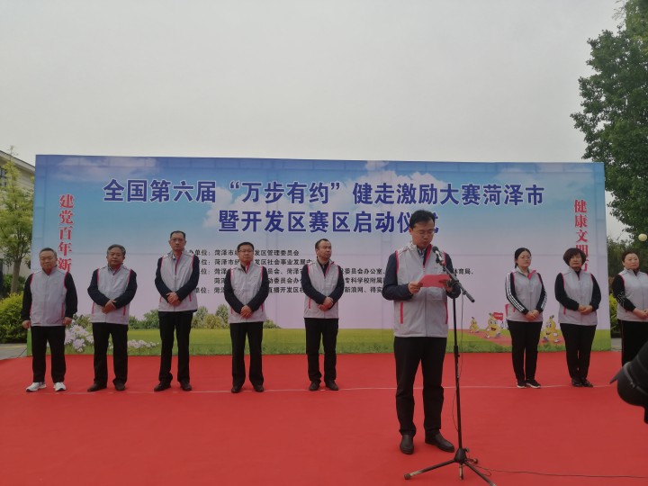 4月28日,全國第六屆“萬步有約”健走激勵大賽菏澤市暨開發(fā)區(qū)賽區(qū)啟動儀式在菏澤醫(yī)專附屬醫(yī)院舉行。菏澤市衛(wèi)健委副主任趙勝利,菏澤市總工會經審會副主任李霞,菏澤市體育局副局長張源溪,菏澤市疾病預防控制中心黨總支書記、主任鄭連榮,菏澤市經濟開發(fā)區(qū)黨工委副書記劉勇,菏澤市經濟開發(fā)區(qū)管委會副主任張曉宇,菏澤醫(yī)專附屬醫(yī)院黨委副書記、院長苗祥玉出席啟動儀式。菏澤市直各單位、經濟開發(fā)區(qū)轄區(qū)各單位健走隊員600余人參加了啟動儀式及健走活動。