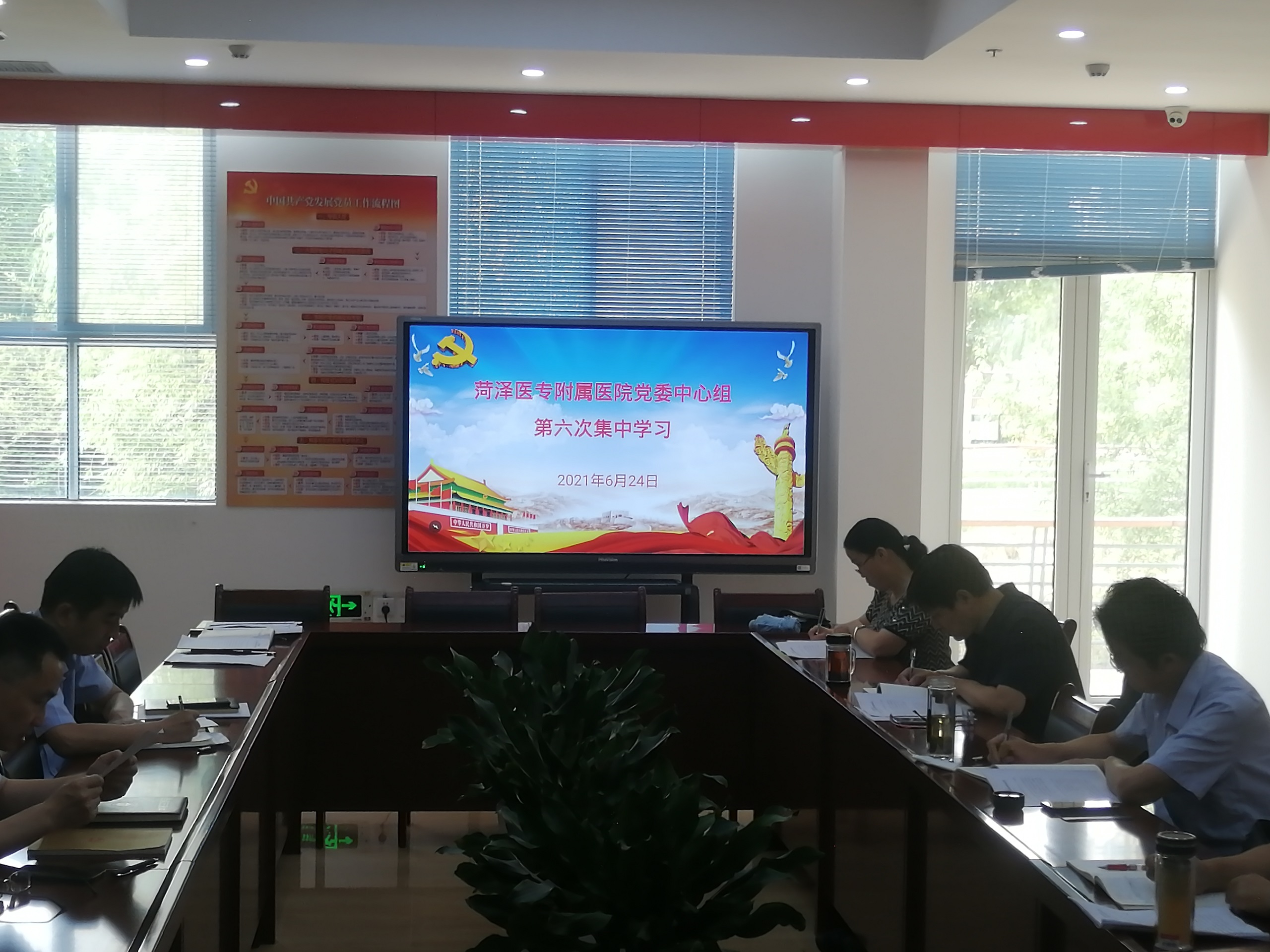 6月24日下午,菏澤醫(yī)專(zhuān)附屬醫(yī)院黨委書(shū)記劉心臣主持召開(kāi)2021年第6次黨委理論學(xué)習(xí)中心組學(xué)習(xí)會(huì)議,醫(yī)院黨委委員、各黨支部書(shū)記參加會(huì)議。