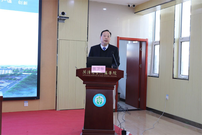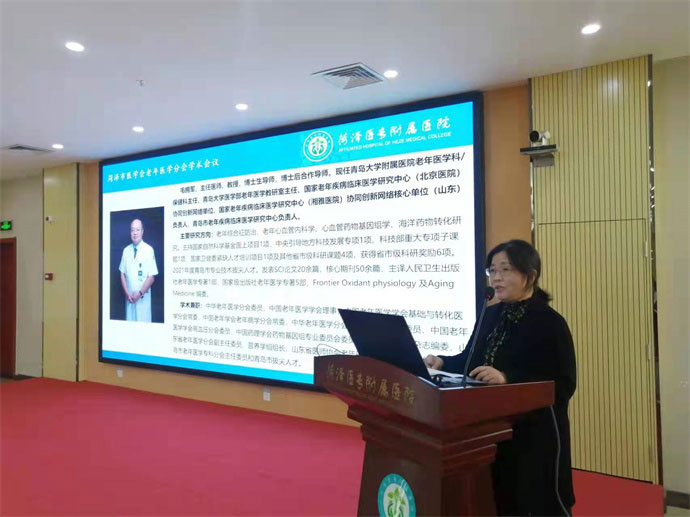 菏澤醫(yī)專附屬醫(yī)院院長王克志代表醫(yī)院致歡迎辭,他首先對大會的隆重召開表示熱烈的祝賀,對領(lǐng)導(dǎo)、專家、教授和所有熱愛老年醫(yī)療健康事業(yè)的專業(yè)人員的到來表示熱烈歡迎。他介紹菏澤醫(yī)專附屬醫(yī)院是經(jīng)山東省衛(wèi)健委批準成立的一所集醫(yī)療、養(yǎng)老、康復(fù)、教學(xué)、科研和培訓(xùn)為一體的公辦非營利性三級綜合醫(yī)院,設(shè)醫(yī)療、養(yǎng)老、教學(xué)三個區(qū)域。菏澤醫(yī)專附屬醫(yī)院為老年人構(gòu)建醫(yī)、康、養(yǎng)全方位及全過程的健康服務(wù)體系,是山東省醫(yī)養(yǎng)結(jié)合示范單位。