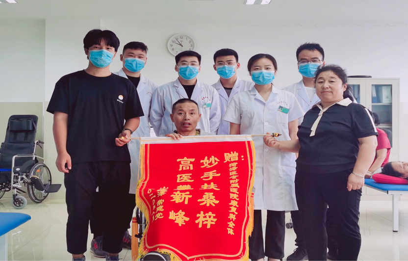 2020年8月20日,我院康復(fù)科收到一面印著“妙手扶桑梓 高醫(yī)攀新峰”的錦旗,十個字熠熠生輝,表達了患者及家屬的感激之情。