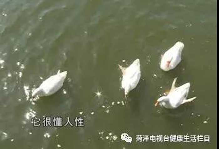 這是菏澤醫(yī)專附院護(hù)養(yǎng)中心散養(yǎng)的四只大白鵝,護(hù)養(yǎng)中心環(huán)湖而建,風(fēng)景秀麗。四只肥美可愛的大白鵝,給居住在這里的老人們?cè)鎏砹藷o數(shù)的歡聲笑語。環(huán)湖散步,賞魚,喂鵝成了老人們每天的必修課。