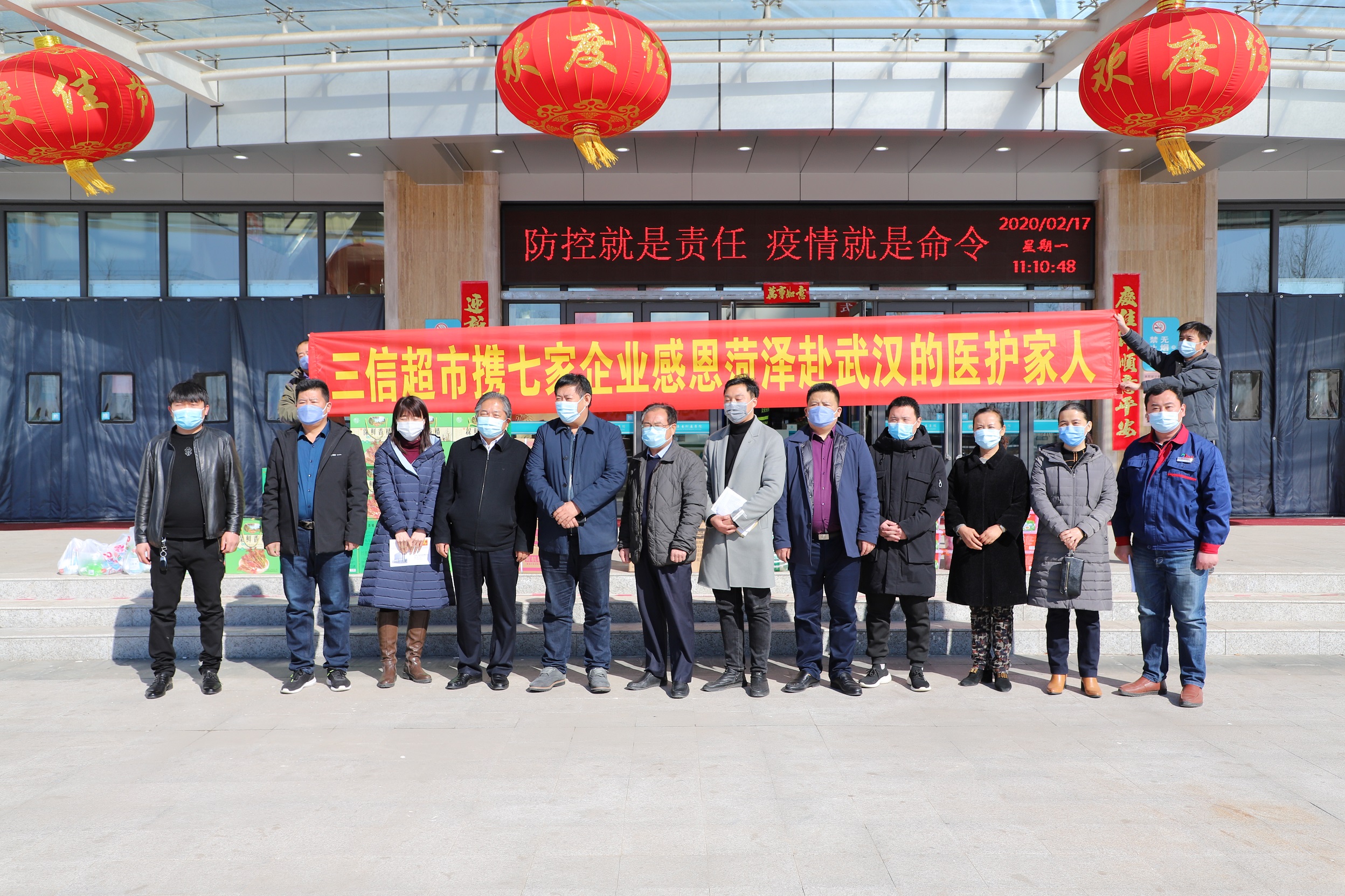 2月17日,由市委宣傳部牽頭,山東三信集團(tuán)董事長(zhǎng)鄧小華攜手山東菏建惠澤建設(shè)有限公司董事長(zhǎng)王亞偉、菏澤金辰食品有限公司創(chuàng)始人池昱辰、菏澤衣加衣服飾廣場(chǎng)創(chuàng)始人吳賀、菏澤科泰電梯有限公司董事長(zhǎng)朱仰杰、山東馳美展柜有限公司創(chuàng)始人李海濤、菏澤市大廚商貿(mào)有限公司創(chuàng)始人王鵬,7位愛(ài)心企業(yè)家到我院慰問(wèn)“逆行”湖北的10名醫(yī)療人員家屬,向全力支持配合醫(yī)療人員參加抗擊疫情的家屬們表示致敬,并送去慰問(wèn)品與慰問(wèn)信。院長(zhǎng)苗祥玉及其他院領(lǐng)導(dǎo)出席活動(dòng)。