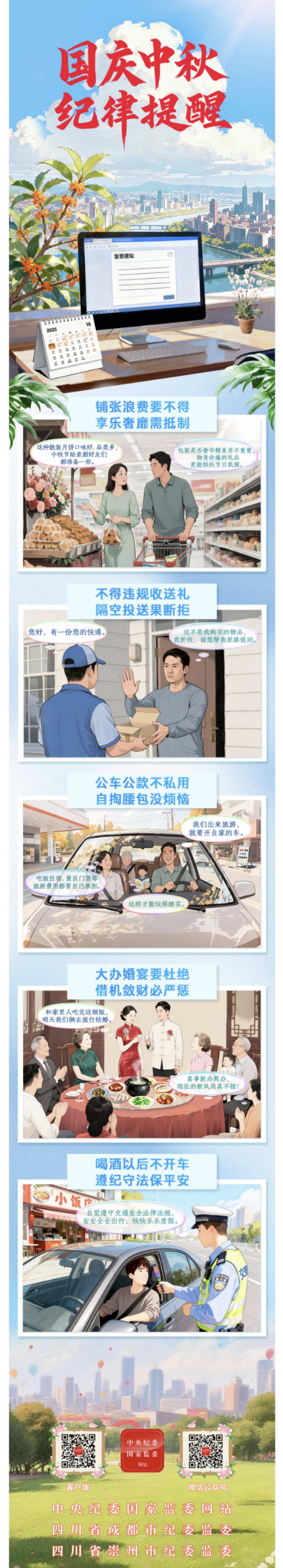 中央紀(jì)委辦公廳印發(fā)《關(guān)于國(guó)慶中秋期間嚴(yán)格落實(shí)中央八項(xiàng)規(guī)定精神、從嚴(yán)糾治“四風(fēng)”的通知》